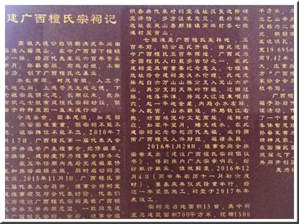 公园二零一九年一月十二日,岁次戊戌十二月初七,广西檀氏宗祠落成,由广西檀氏昭公十八代檀进等共同主持。